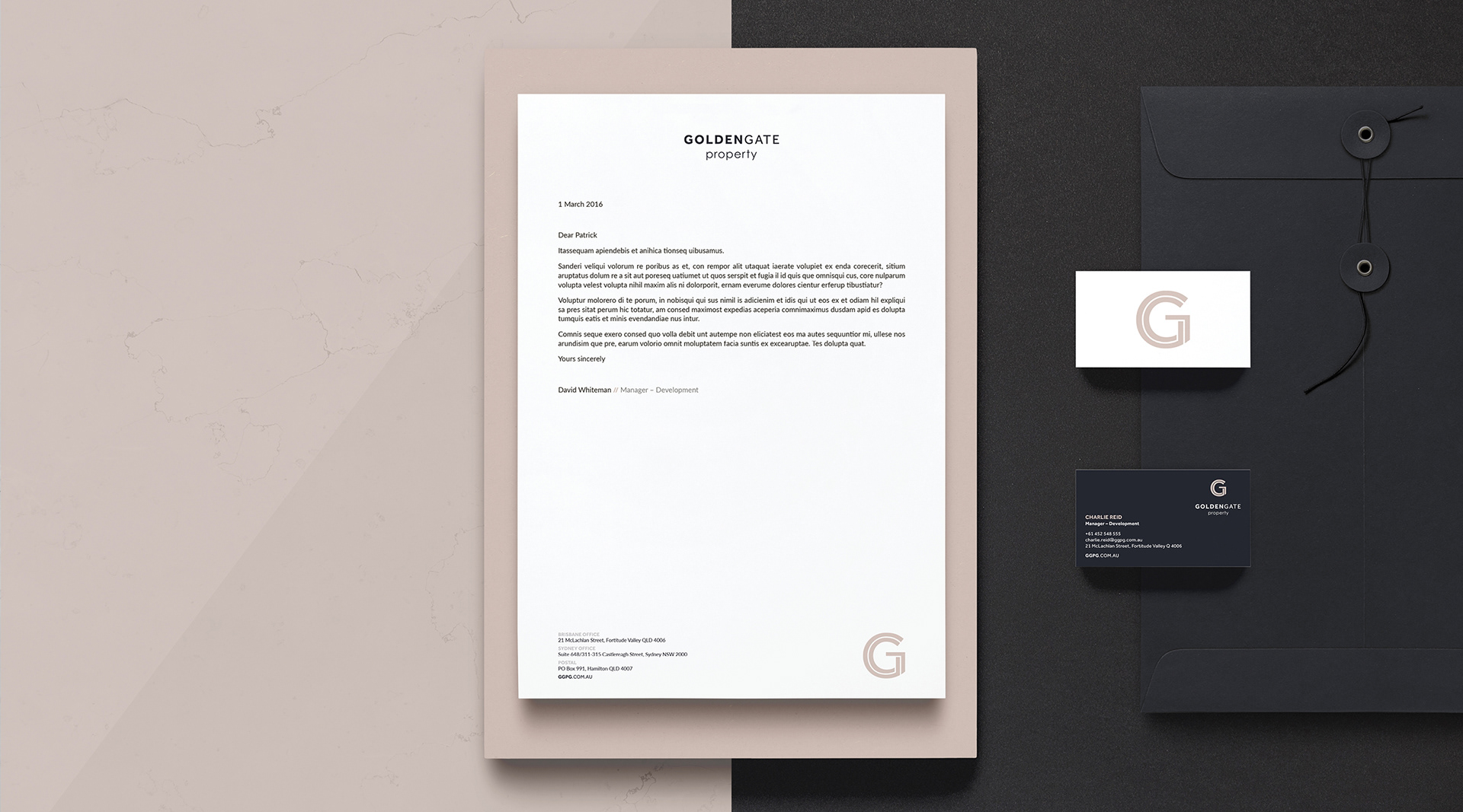 Golden Gate Property identifies, funds, designs and delivers some of the most exciting projects in South East Queensland. Its multi-million dollar portfolio includes quality residential communities and integrated redevelopments. I created concepts for their new corporate brand, then rolled out the chosen design across various collateral including stationery, customised Wordpress website and brand style guide.